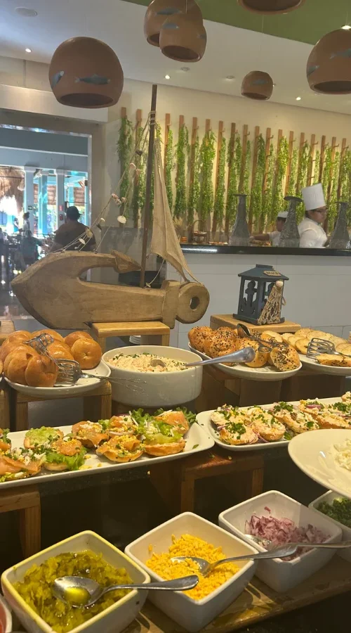 Many of the resort hotels in the Yucatan are the “all-inclusive” variety and this Iberostar resort was no different. In addition to an outrageous breakfast buffet that included almost everything edible, and for all I know some things that weren’t. There were snack places and other buffets, but there were also dinner choices including Mediterranean, Japanese, Italian and Mexican restaurants. Ironically, in our opinion, the Mexican restaurant was not in the class with the others.